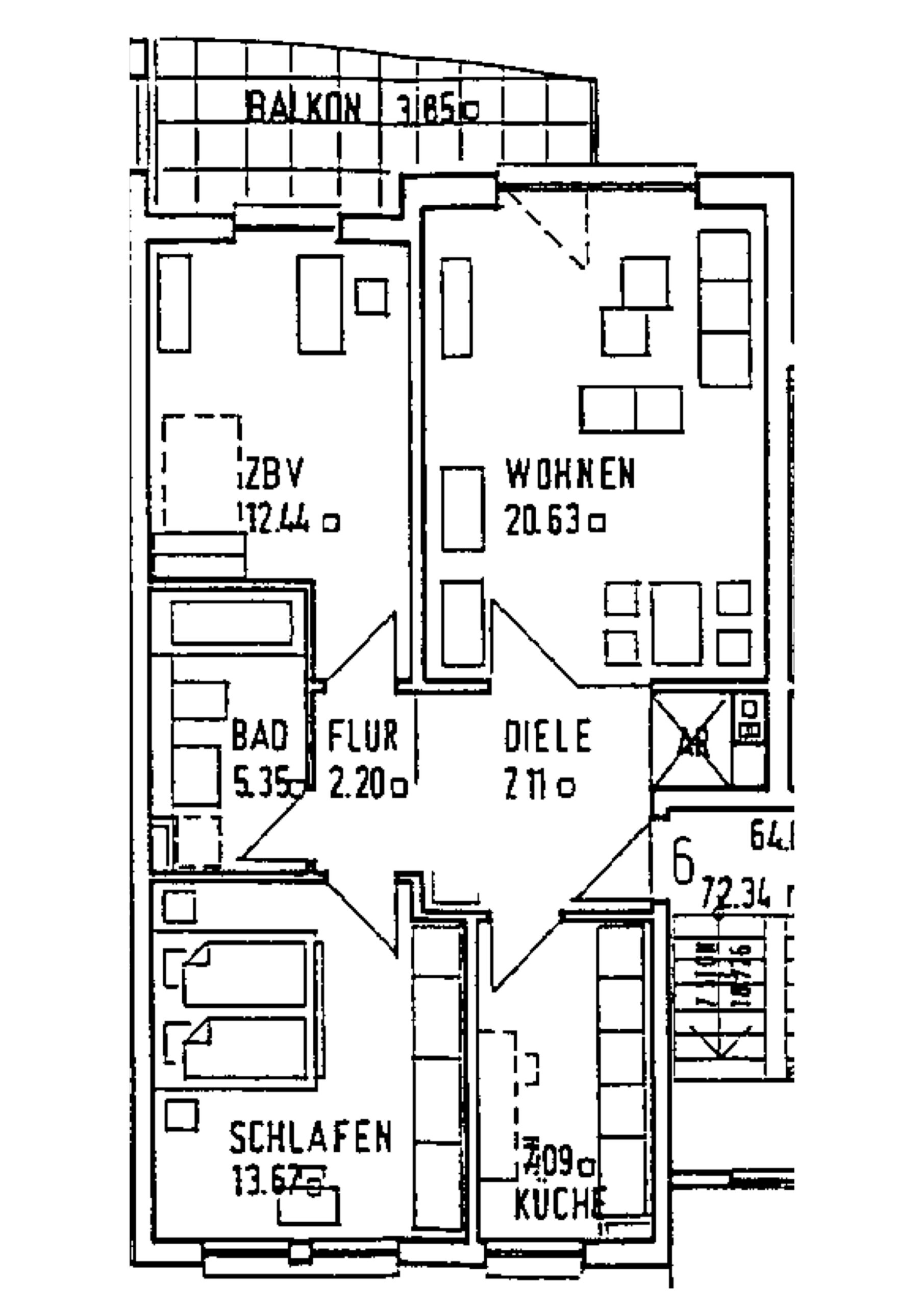 Die Wohnung verfügt über einen durchdachten Grundriss, der eine angenehme Wohnatmosphäre schafft. Das Badezimmer ist mit einer Badewanne ausgestattet. Ein besonderes Highlight ist der großzügige Balkon, der zum Entspannen im Freien einlädt.