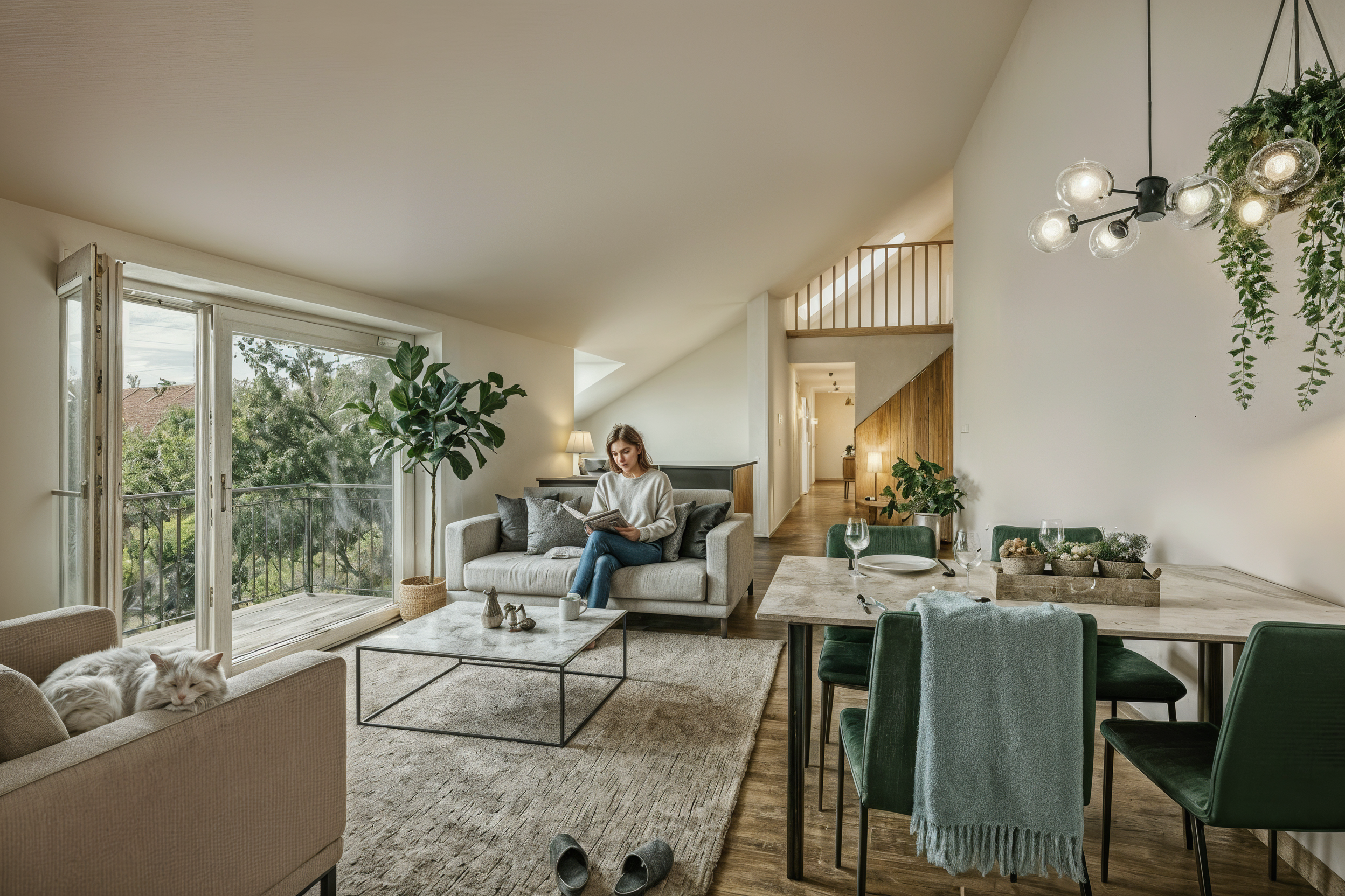 Diese Dachgeschosswohnung vereint modernes Design, großzügiges Wohnen und flexible Nutzungsmöglichkeiten – ein Zuhause, in dem Komfort, Lebensqualität und persönliche Gestaltung perfekt zusammenkommen.