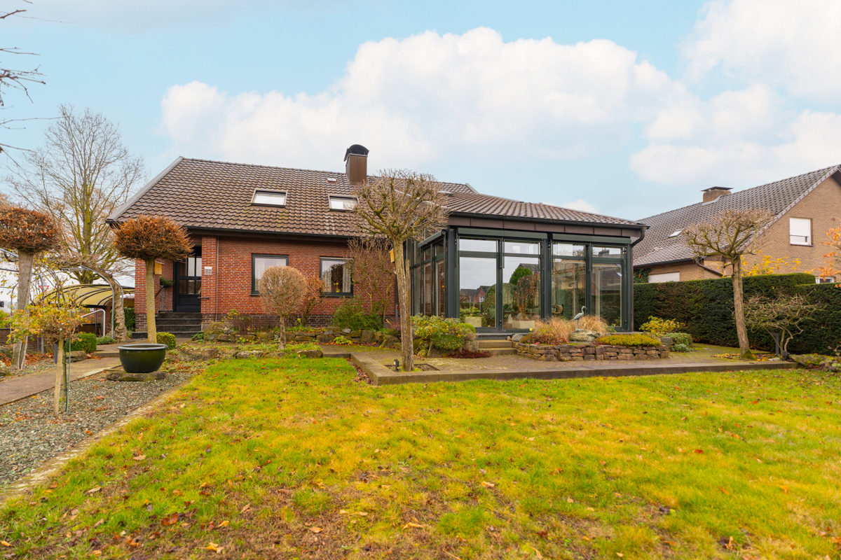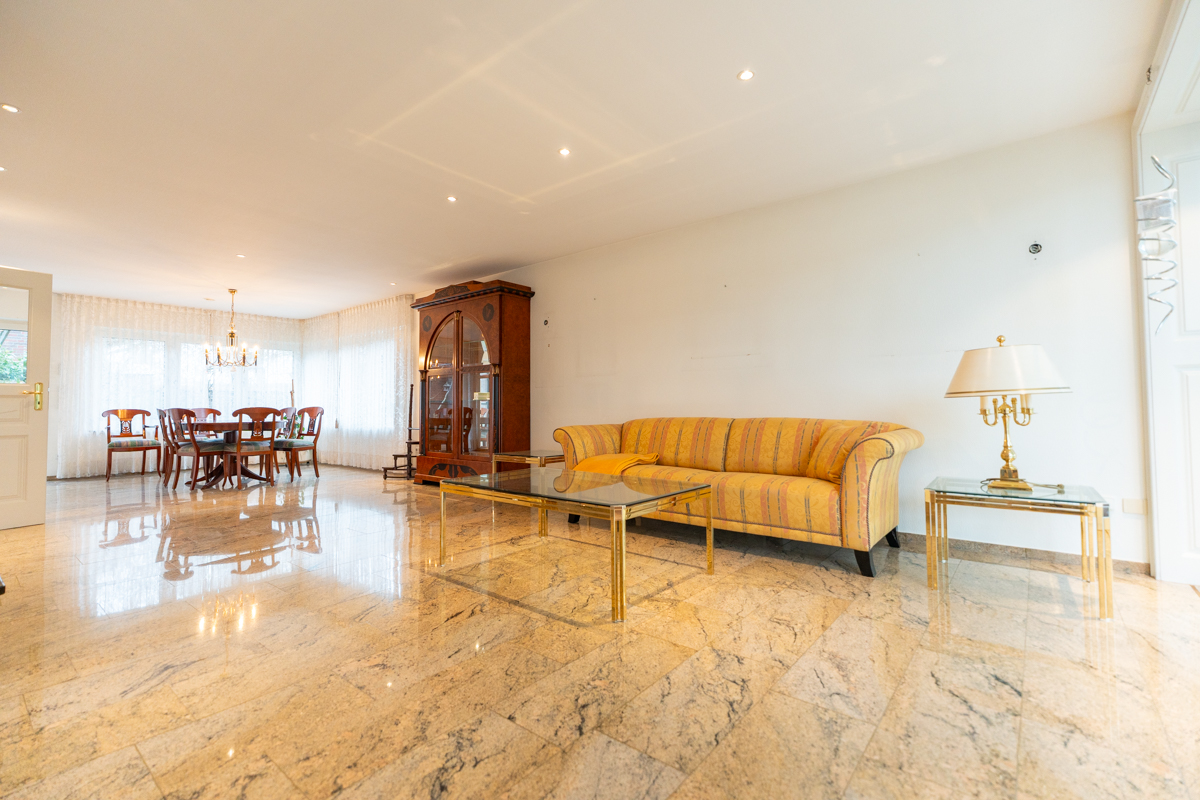 Dieses traumhafte Einfamilienhaus aus dem Jahr 1969 wurde 1994 umfassend saniert und verbindet zeitlose Architektur mit hochwertiger Ausstattung. Auf einem 718 m² großen Grundstück erwartet Sie eine großzügige Wohnfläche von insgesamt 244,9 m², die sich in 154,39 m² im Erdgeschoss und 90,51 m² im Obergeschoss aufteilt und durchdachten Komfort sowie viel Platz für die ganze Familie bietet. Schon beim Betreten des Hauses werden Sie von einem hellen, offenen Eingangsbereich empfangen, der den perfekten Rahmen für das Erdgeschoss schafft. Hier finden Sie ein Gäste-WC, eine geräumige Küche sowie ein lichtdurchflutetes Wohnzimmer mit gemütlicher Kaminecke. Besonders hervorzuheben ist der angrenzende Wintergarten mit automatischer Beschattung, der zu entspannten Stunden einlädt und einen wunderbaren Übergang zwischen Innen- und Außenbereich schafft.