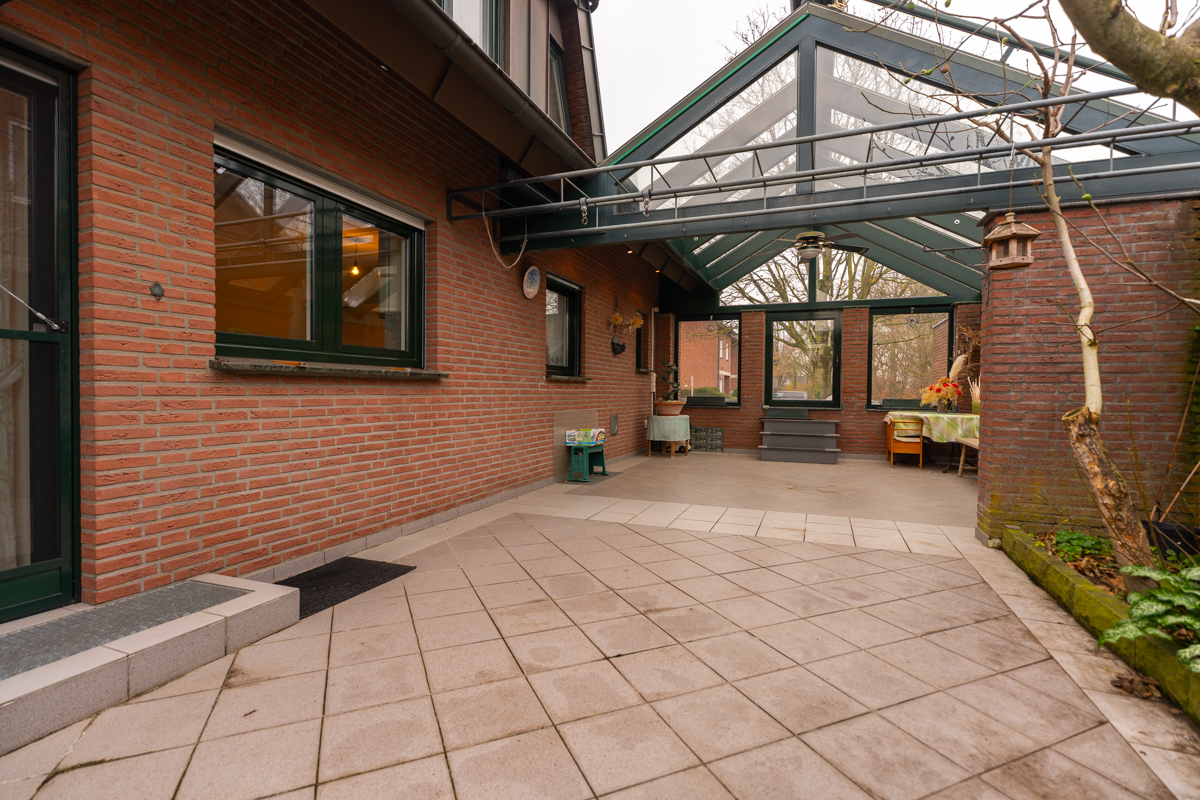 Im hinteren Bereich des Hauses erwartet Sie die überdachte, rückwärtig gelegene Terrasse – geschützt, privat und ideal für gemütliche Familienmomente im Freien.