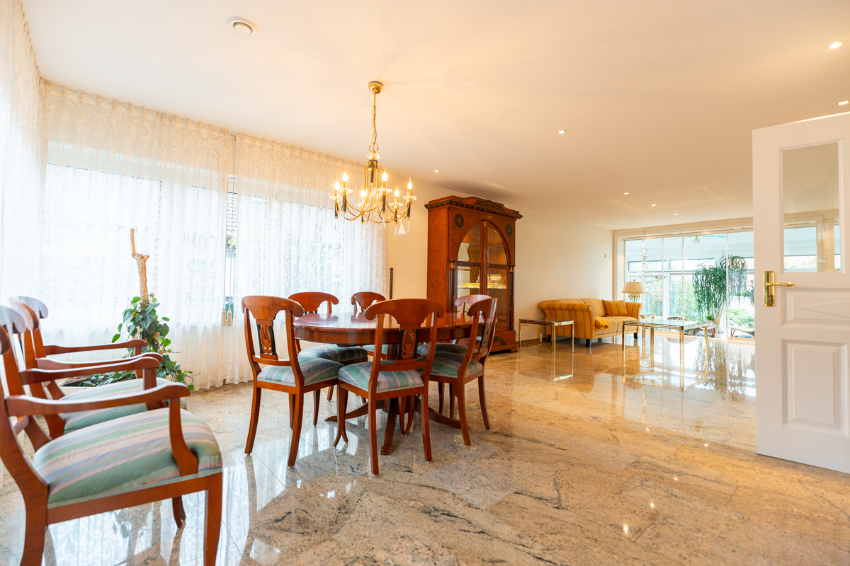 - Granitböden im Erdgeschoss und auf den Treppen, Parkett in den Wohnräumen