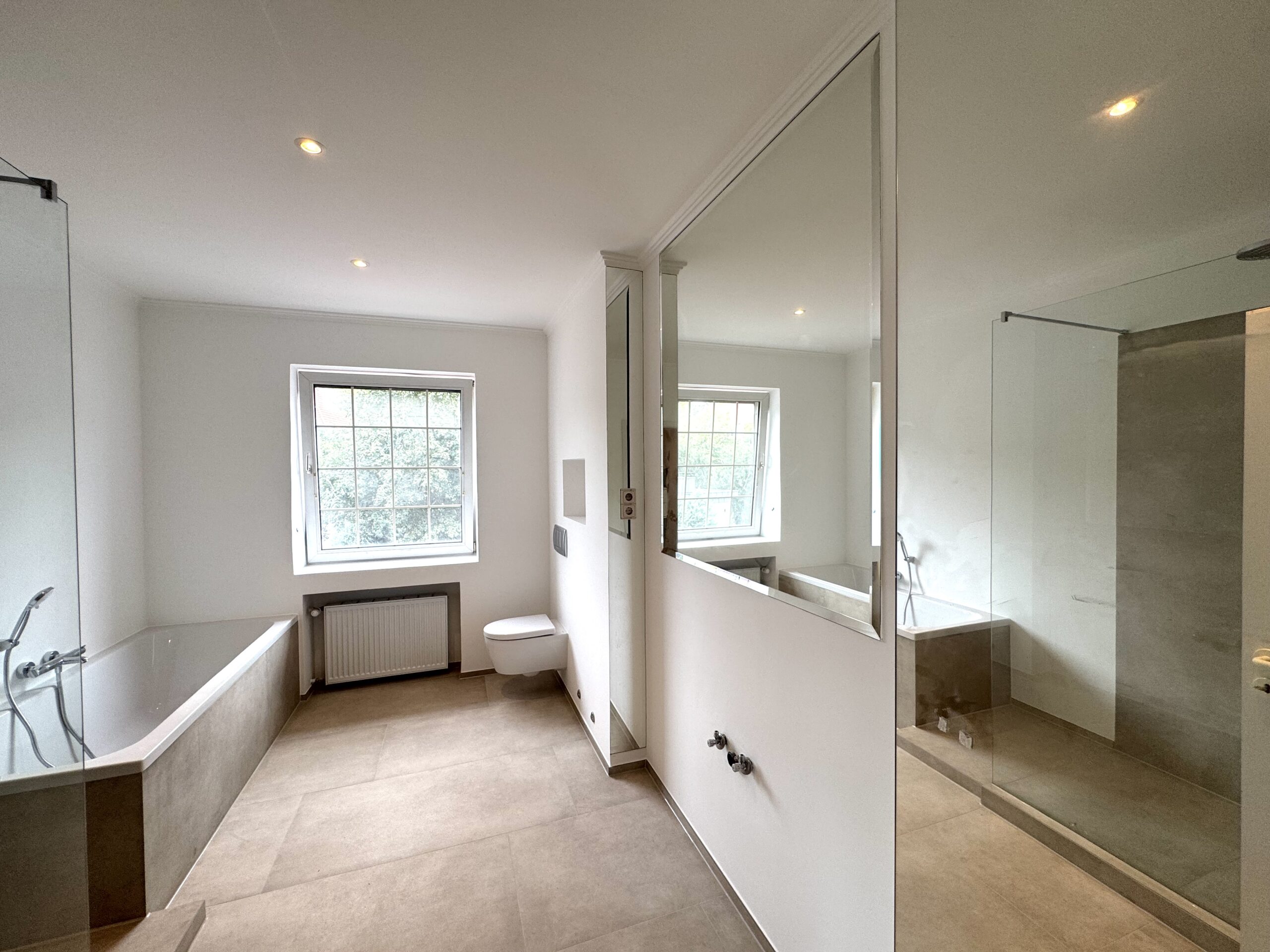 Das Tageslichtbad wurde modernisiert und verfügt über Badewanne, Dusche und integrierte Spiegel. Ein separates Gäste-WC sowie ein weiteres Bad mit Dusche, angrenzend an ein weiteres Zimmer (z. B. Büro oder Gästezimmer), erhöhen den Wohnkomfort und bieten flexible Nutzungsmöglichkeiten.