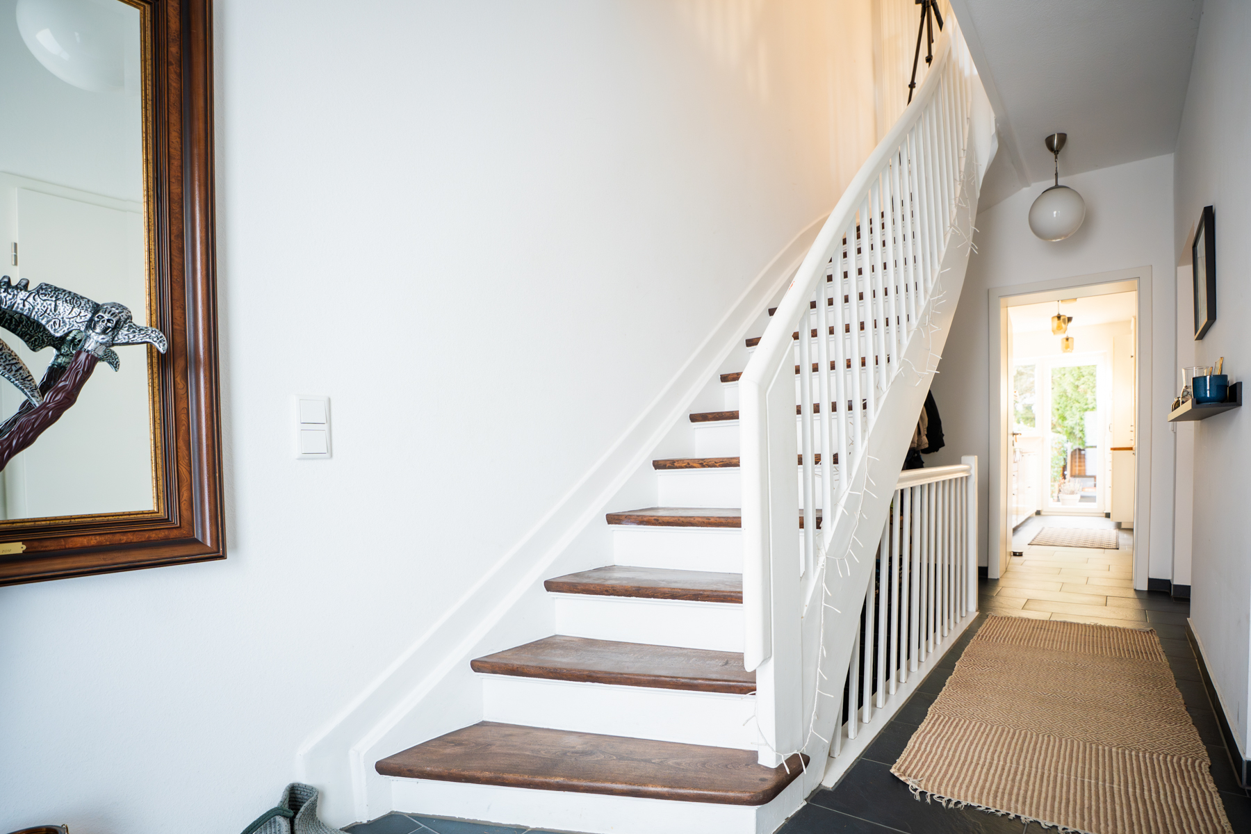 Im Rahmen der eingangs erwähnten Kernsanierung wurde das Reihenhaus technisch auf den heutigen Stand gebracht. Erneuert wurden unter anderem die gesamte Elektrik, die Fenster sowie die Haustür, die Wasser- und Abwasserleitungen sowie die Gasleitungen. In allen Räumen stehen ein bis zwei Netzwerkanschlüsse zur Verfügung und spiegeln den modernen Ausstattungsstandard wider. Darüber hinaus erfolgte der Einbau von Dachgauben und Trockenbauwänden zur Optimierung des Grundrisses, ein neuer Fassadenanstrich, die vollständige Erneuerung aller Badezimmer sowie sämtlicher Oberböden im gesamten Haus.