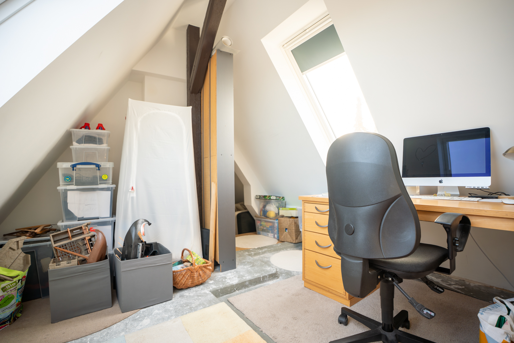Das Dachgeschoss ist der perfekte Rückzugsbereich für die Kinder. Helle, freundlich gestaltete Kinderzimmer zeichnen sich durch einladende Dachgauben aus, die für besonders viel Licht sorgen. Auch diese Etage verfügt über ein gehobenes Badezimmer mit Fußbodenheizung und Badewanne. Als geräumiges Homeoffice dient der ausgebaute und gedämmte Spitzboden.