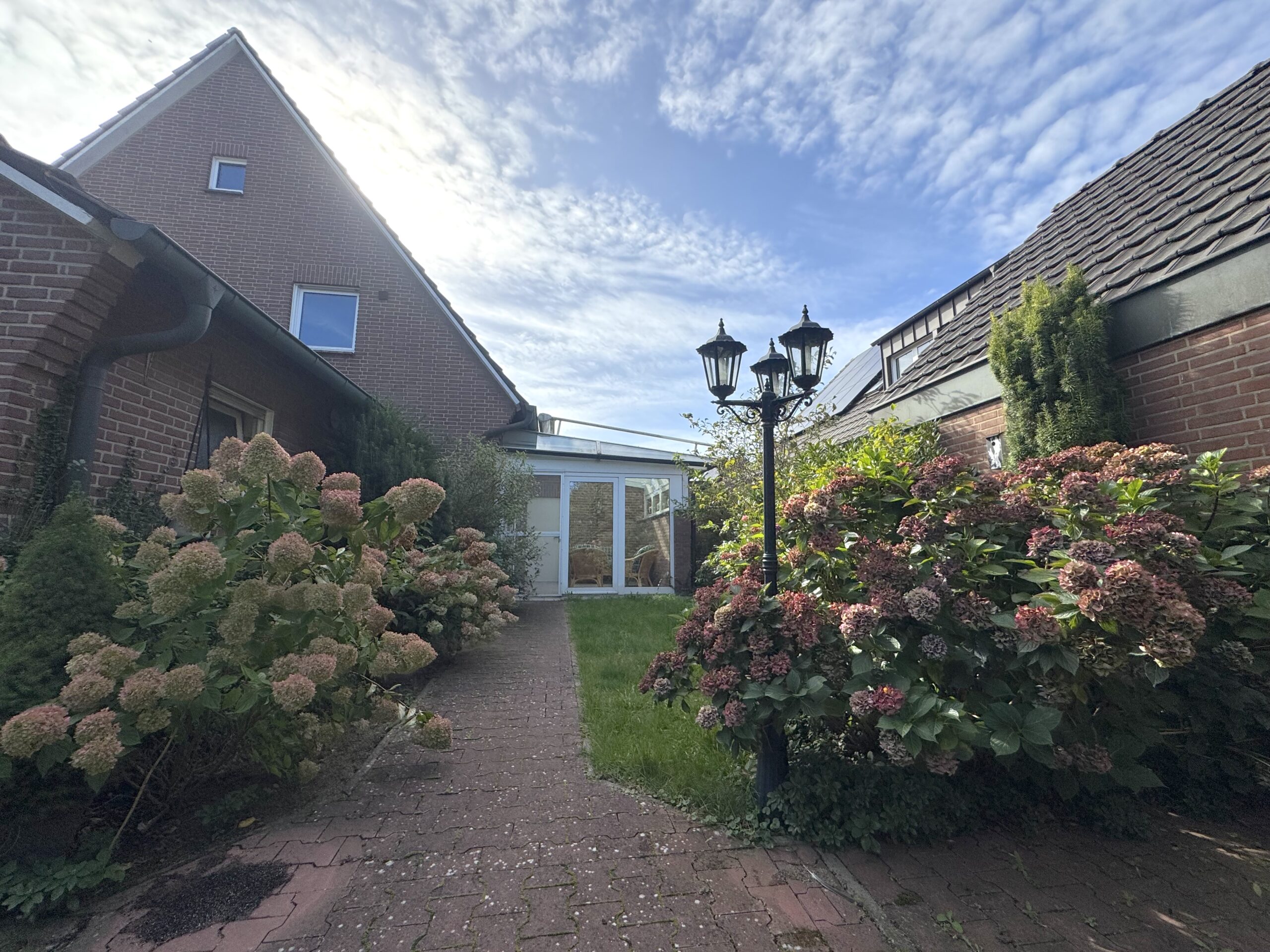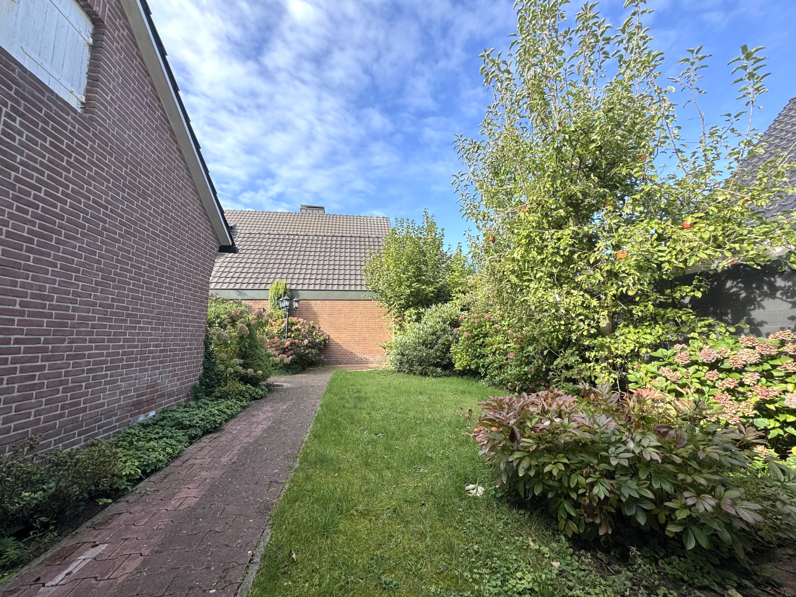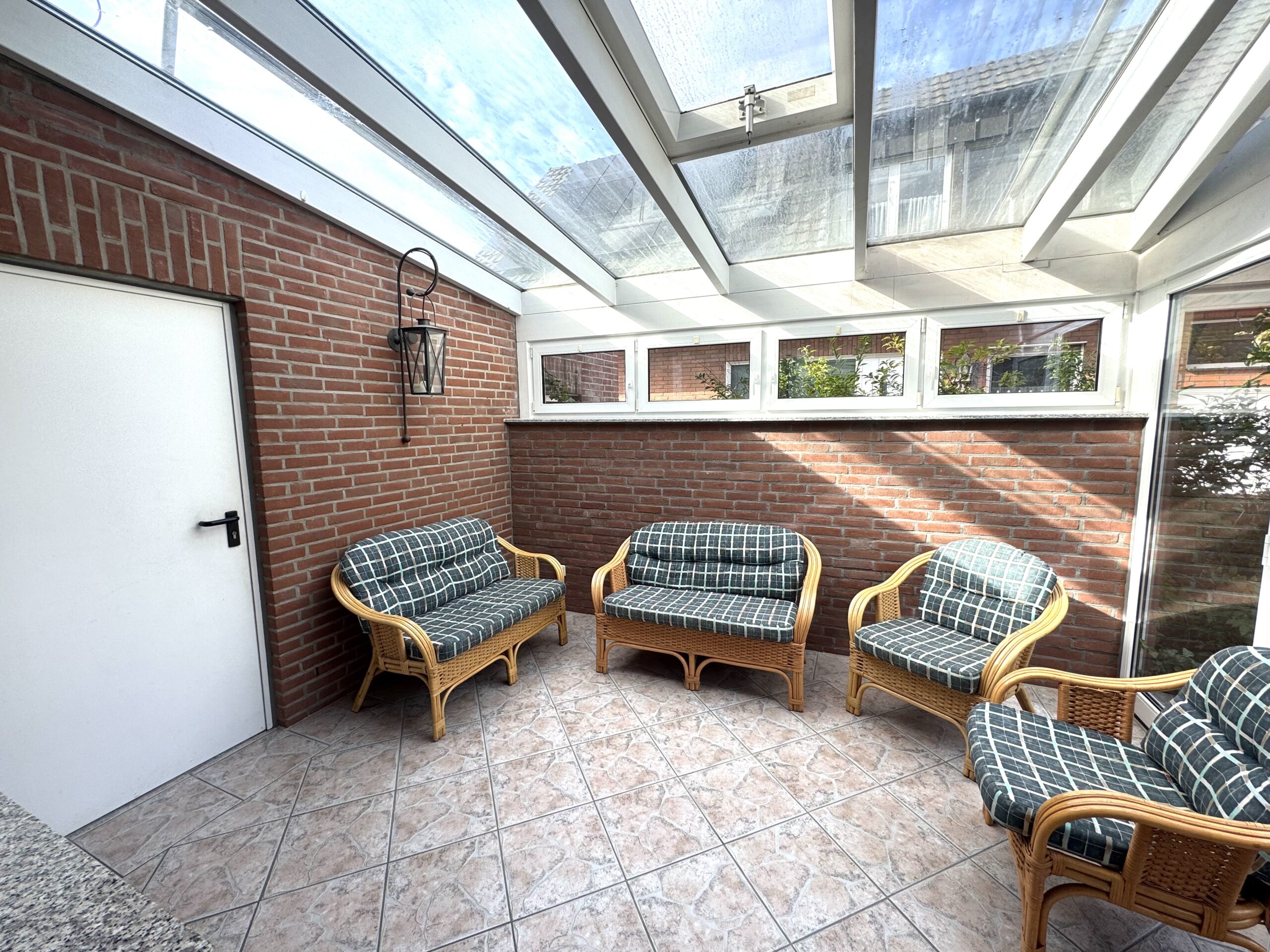 Vom Wintergarten aus gelangen Sie in den einladenden, grünen und privaten Garten. Die Terrasse lädt zum Entspannen ein, während der gepflegte Garten Platz für Spiel, Erholung und gesellige Stunden bietet.